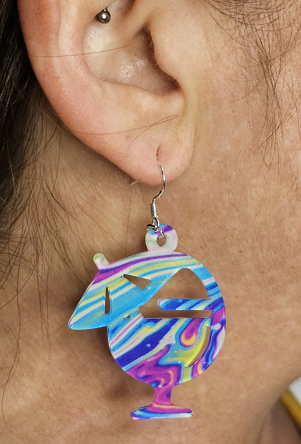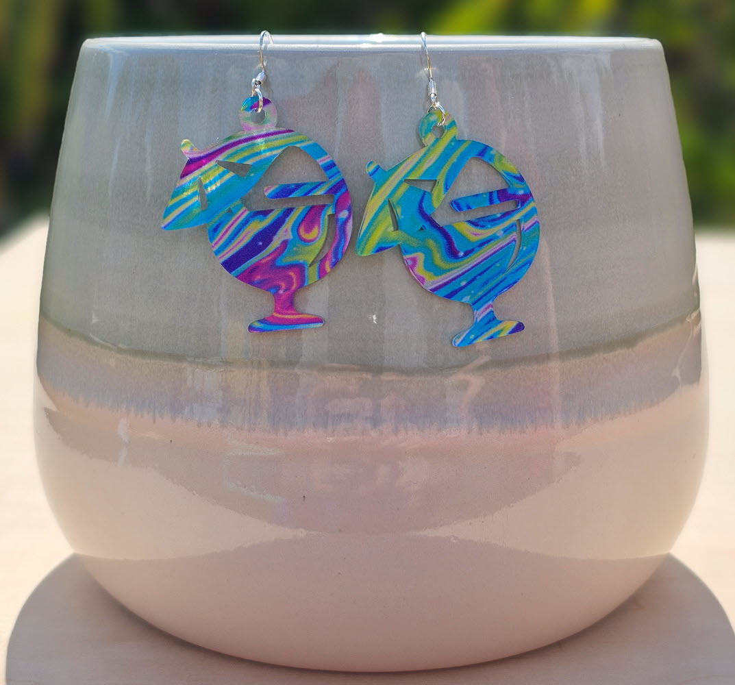 Turn up the color and bring on the summer vibes with our Poolside Party Drink Dangle Earrings! These bold and playful earrings are laser-cut in the shape of a tropical drink glass—complete with umbrella—and made from vibrant, marbled acrylic in a swirl of rainbow hues. Each pair is totally unique, thanks to the one-of-a-kind acrylic patterns that make every set a mini piece of wearable art.